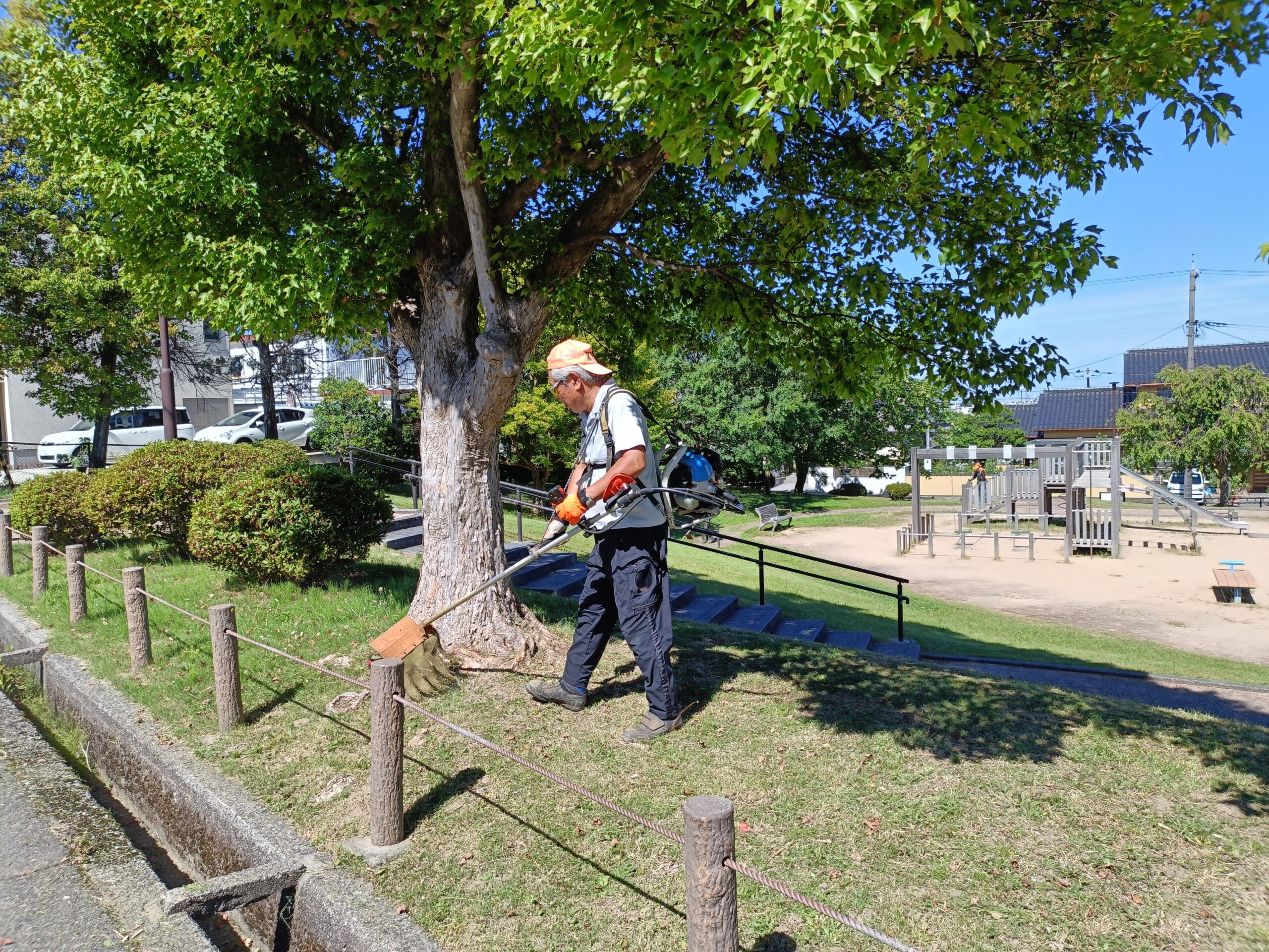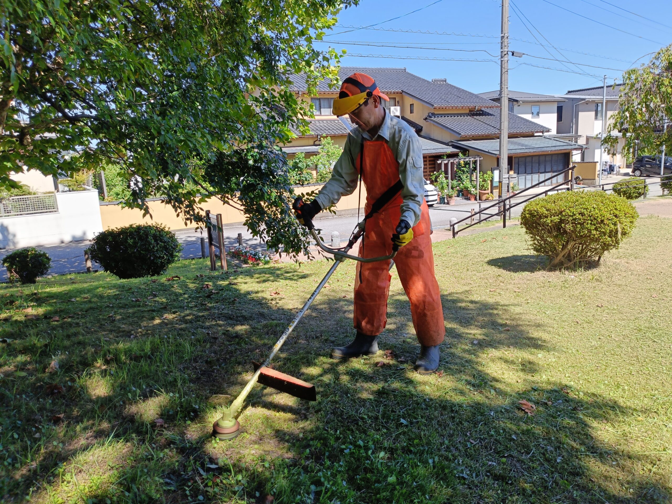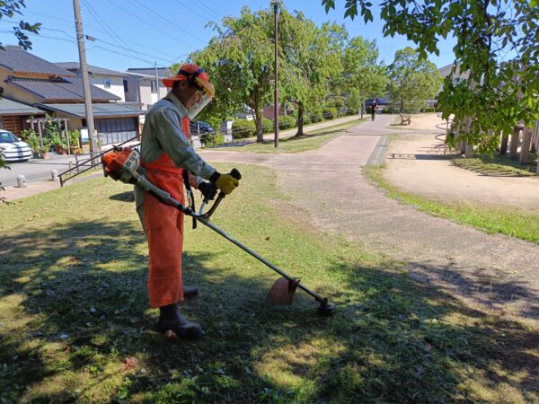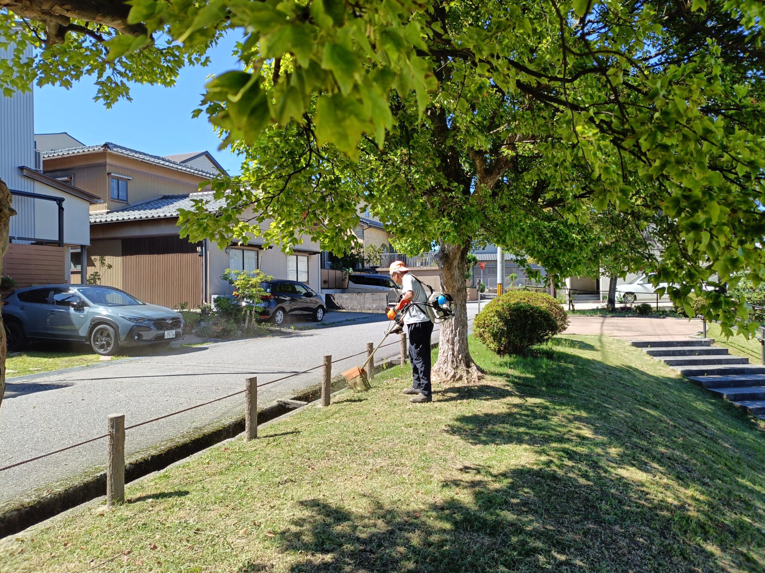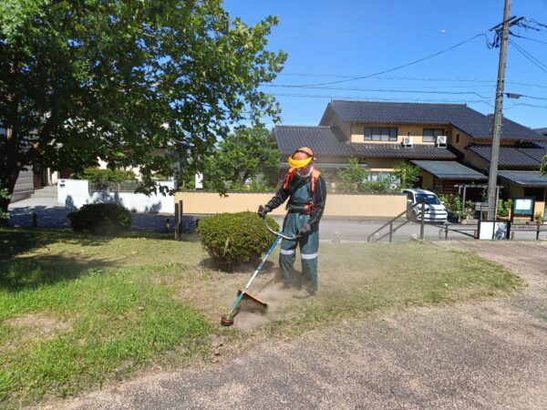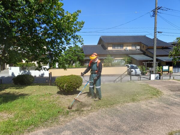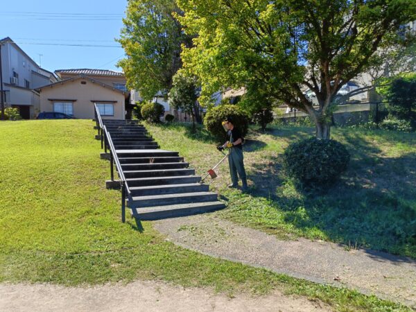 Byadmin2025/10/19 金沢市の秋の一斉美化清掃に合わせて、町内の空き家等の道路縁の草刈りを公園愛護委員と町会の…